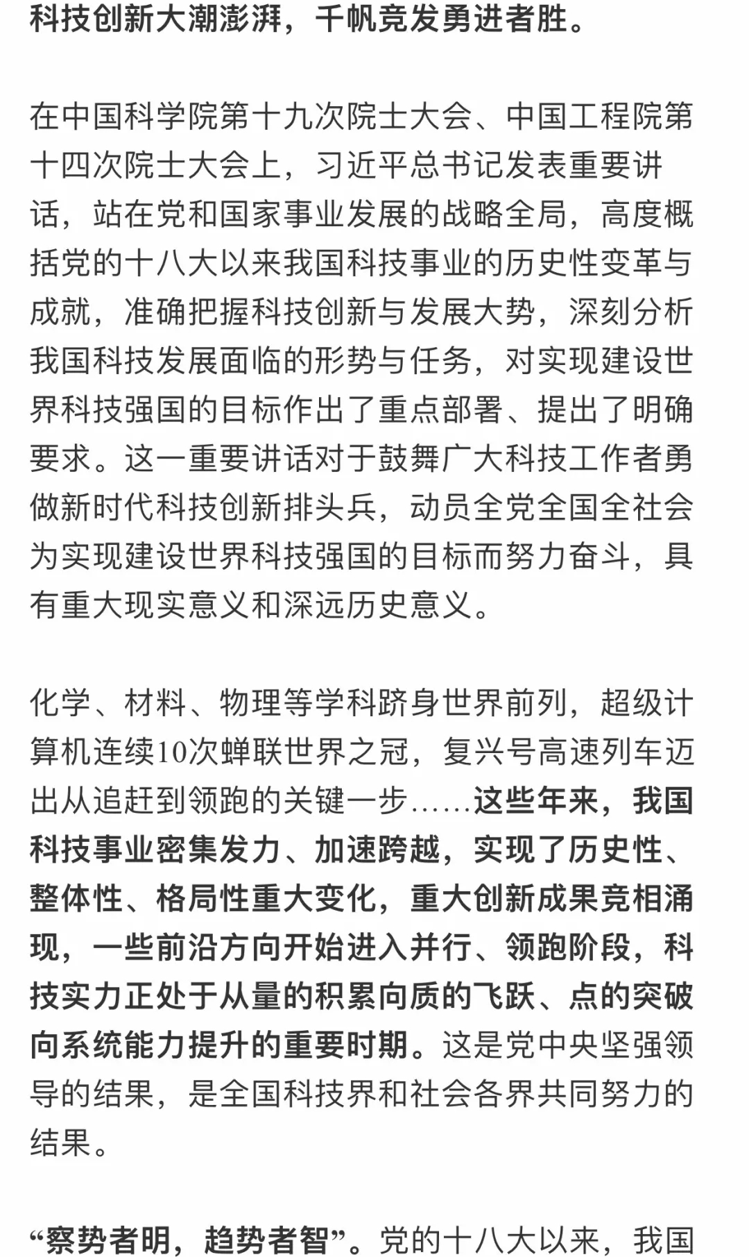 深刻把握科技創新與發展大勢—— 一論學習貫徹習近平總書記兩院院士大會重要講話