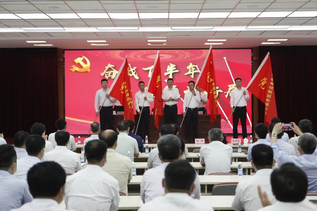 會議開始,萬守朋首先帶領全體參會黨員重溫入黨誓詞。會議通報了集團黨史學習教育階段成果,部署了近期重點工作,表彰了集團系統“兩優一先”個人和集體,并啟動“奮戰下半年,確保開好局”活動。集團領導為獲獎代表頒獎,為黨員突擊隊代表授旗。