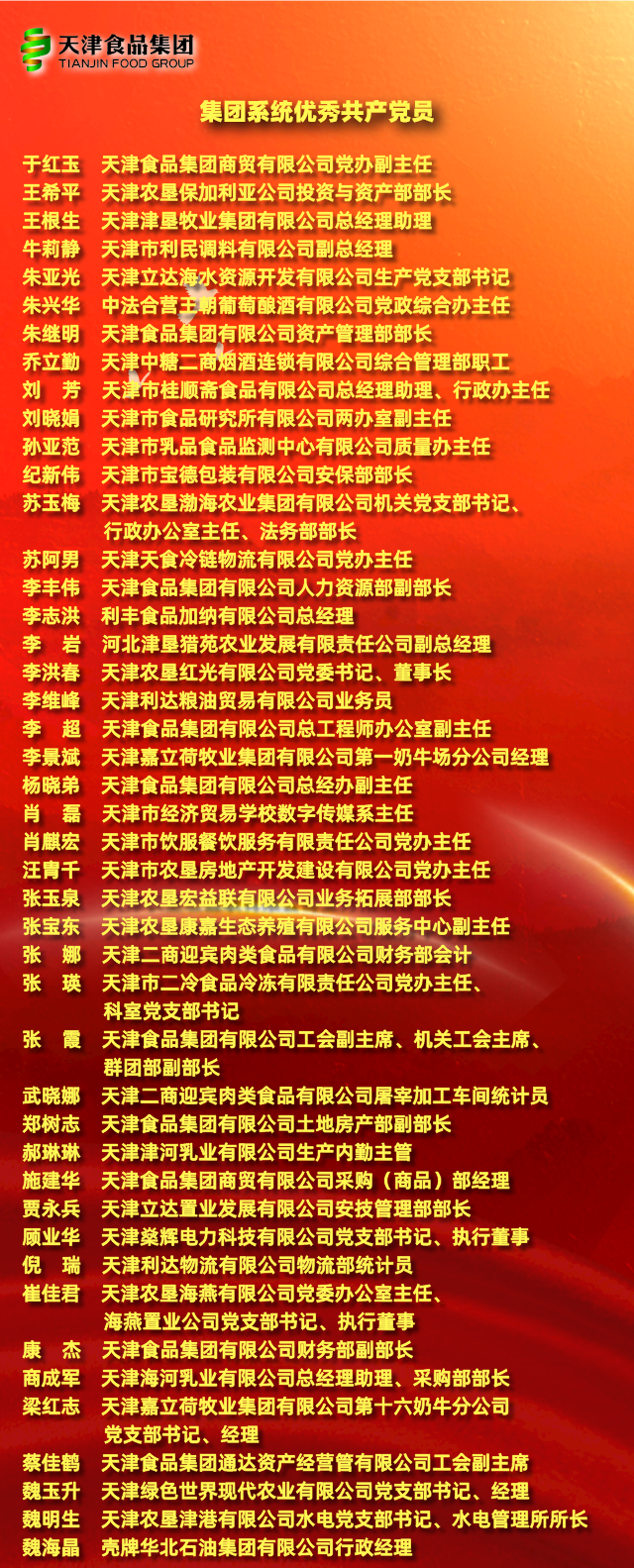 6月29日上午,天津食品集團召開“兩優一先”表彰會暨黨史學習教育專題黨課。熱烈慶祝中國共產黨成立100周年,總結黨史學習教育階段工作,部署下階段工作重點,表彰近一年來涌現出的先進基層黨組織、優秀共產黨員和黨務工作者,啟動“奮戰下半年,確保開好局”活動,并由集團黨委書記、董事長萬守朋講授黨史學習教育專題黨課。