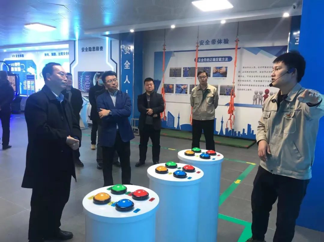 儀式結(jié)束后,首期培訓(xùn)班學(xué)員進(jìn)入多媒體宣教室進(jìn)行消防安全知識學(xué)習(xí)。與會領(lǐng)導(dǎo)對安全培訓(xùn)體驗中心各模塊的組成、體驗?zāi)康摹Ⅲw驗效果等逐一進(jìn)行了了解,并對VR安全體驗、電力安全體驗等模塊進(jìn)行了體驗,對大數(shù)據(jù)中心展現(xiàn)的智慧工地、電站智能運維系統(tǒng)等一系列模塊表示高度贊揚,并現(xiàn)場通過指揮調(diào)度平臺對房地產(chǎn)公司下屬單位進(jìn)行了指揮連線。