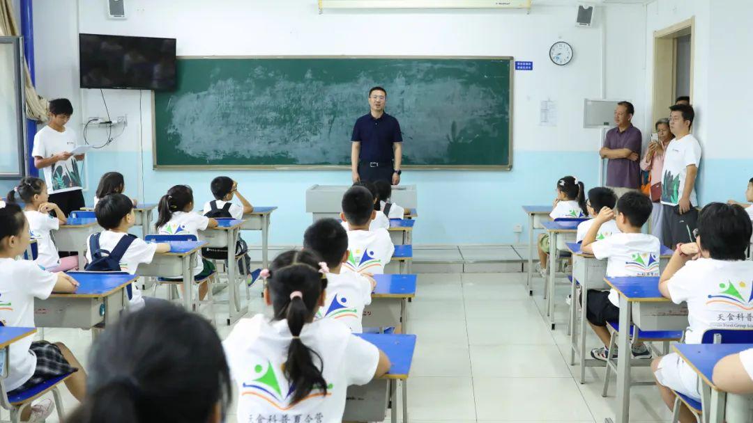 在開營儀式上,王增春代表集團致辭,希望本次活動能夠豐富各位小朋友的暑期生活,提高大家動手動腦和團隊協作能力;大力弘揚科學家精神,牢固樹立強國有我的理想信念,培養和激發小朋友們科學思維與創新活力;通過宣傳“節糧愛糧、反對浪費”時代主題,激發小朋友們自覺養成良好的生活習慣和勤儉節約精神。王增春宣布天食科普夏令營啟動,并進行授旗。