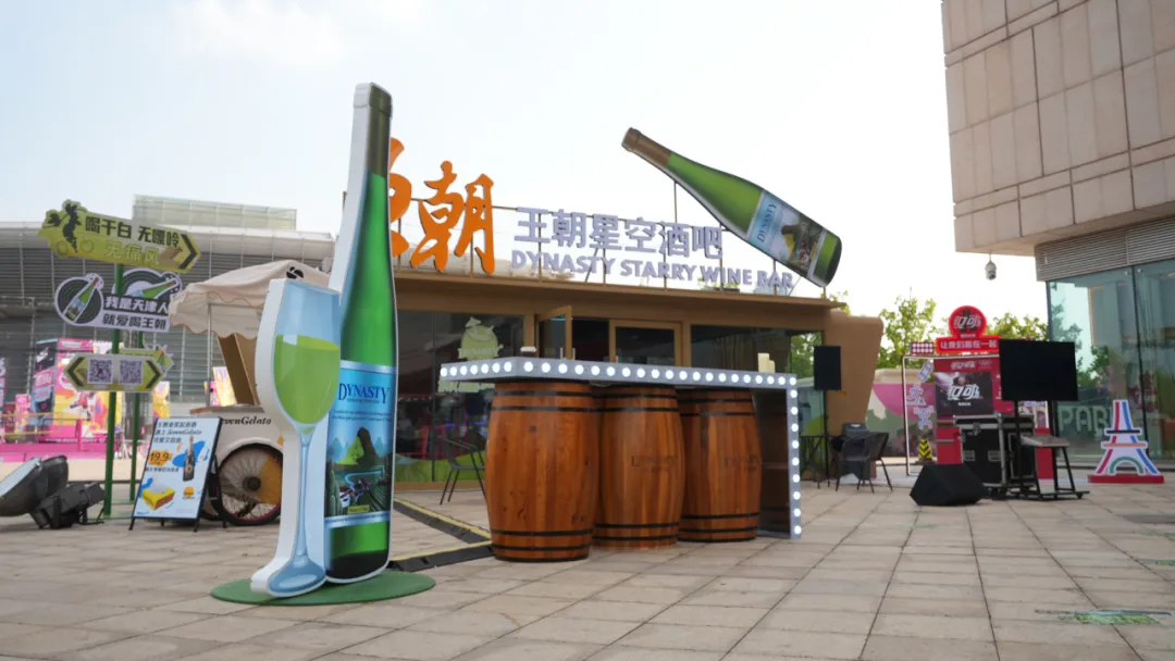 “王朝星空酒吧”在集團打造的沉浸式當“燃”美好市集中無疑是一顆璀璨的星辰。王朝酒吧以“星空”命名,既彰顯了其尊貴與品質,又透露出一種時空交錯的神秘感。酒吧的設計巧妙地融合了復古與現代元素,吧臺則為復古木質材料打造,配上金屬質感的裝飾,營造出一種既古典又現代的氛圍。在這里,消費者可以品味到由王朝公司特供的優質葡萄酒、各種創意調制特飲。酒吧還舉辦星空音樂之夜等品鑒活動,邀請音樂人現場LIVE演繹,讓您在品味美酒的同時,也能享受到音樂的魅力和體育的激情。