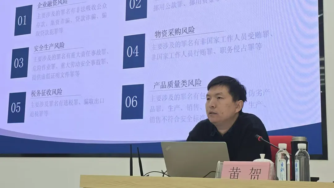 本次培訓邀請天津市檢察院第二分院第一檢察部四級高級檢察官黃賀同志進行專題授課。他從特定領域刑事案件近年總體趨勢和刑事法律風險概述切入主題,通過典型案例深挖刑事犯罪誘因,從立法思路、辦案程序、刑事法律責任等角度,全方位對刑事犯罪高發類案做了專業解讀。