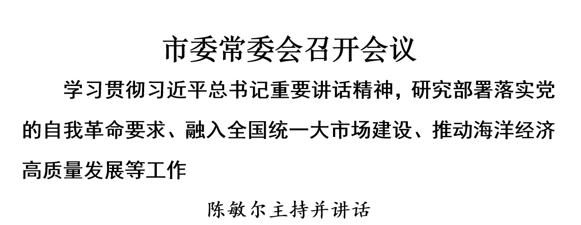 會議強調,要認真領會習近平總書記在中央財經委員會第六次會議上的重要講話精神,與深學深用習近平經濟思想結合起來,牢牢把握縱深推進全國統一大市場建設“五統一、一開放”的基本要求,自覺在大局下想問題、做工作,持續深化要素市場化改革,推進市場制度統一、設施聯通、監管一致,著力推動內外貿一體化發展,積極參與全國統一大市場建設。要牢牢把握推動海洋經濟高質量發展的重要要求,提升向海開放、向海發展能力,科學編制我市海洋經濟發展“十五五”規劃,爭取更多海洋戰略科技力量布局天津,充分發揮天津港的優勢和作用,大力發展港航服務業,做大做強臨港產業、適港產業,加強海洋生態保護修復,深入推進港產城融合發展,打造我國北方地區聯通國內國際雙循環的重要戰略支點。