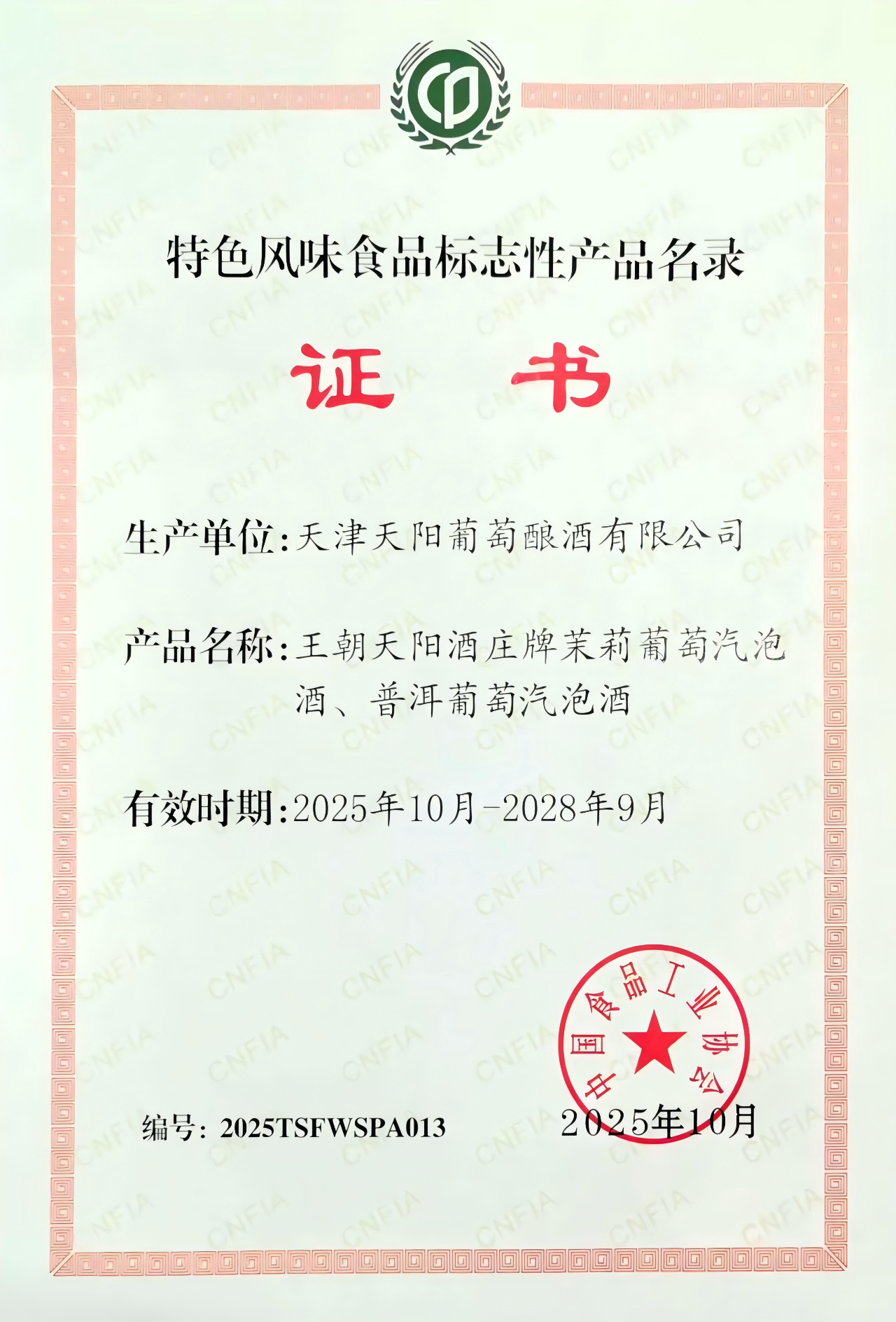 王朝天陽酒莊兩款茶酒入選國家級特色風味食品名錄