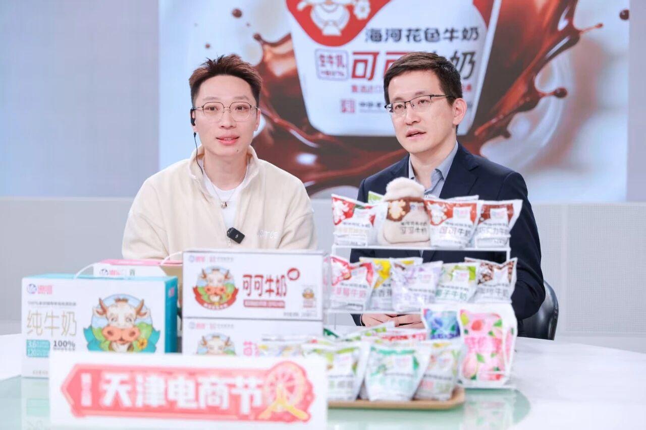 作為天津電商節的老朋友,海河乳品公司已經是第三次亮相了。本次公司帶來了新品“夏威夷果黃油曲奇”牛奶,并同步發布“海河許愿池”系列衍生實物——“可可奶”暖手寶與毛絨掛件。海河乳品公司黨委書記、董事長鄒旸走進直播間,通過帶貨與消費者近距離互動、聽取反饋,精準捕捉到年輕群體對多元口味、創新包裝及場景化產品的需求。未來,公司將持續緊跟消費趨勢,推出更多貼合市場的創新乳品。