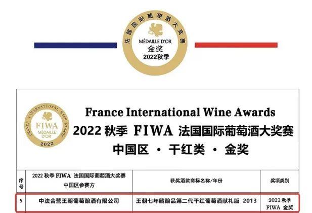 日前,2022秋季FIWA法國(guó)國(guó)際葡萄酒大獎(jiǎng)賽中國(guó)區(qū)獲獎(jiǎng)酒款名單發(fā)布,王朝旗下王朝七年藏釀品第二代干紅葡萄酒獻(xiàn)禮版(2013)、王朝怡色半干白葡萄酒(2021)兩款核心產(chǎn)品分別斬獲金、銀兩項(xiàng)大獎(jiǎng)。獎(jiǎng)項(xiàng)的獲得不僅代表國(guó)際上對(duì)王朝產(chǎn)品品質(zhì)的認(rèn)可,更提振了公司士氣,堅(jiān)定了發(fā)展信心。