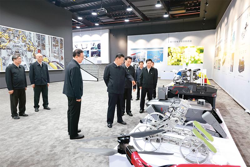2023年10月10日至13日,中共中央總書記、國家主席、中央軍委主席習近平在江西考察。這是11日上午,習近平在景德鎮市昌河飛機工業(集團)有限公司考察。 新華社記者 燕雁/攝