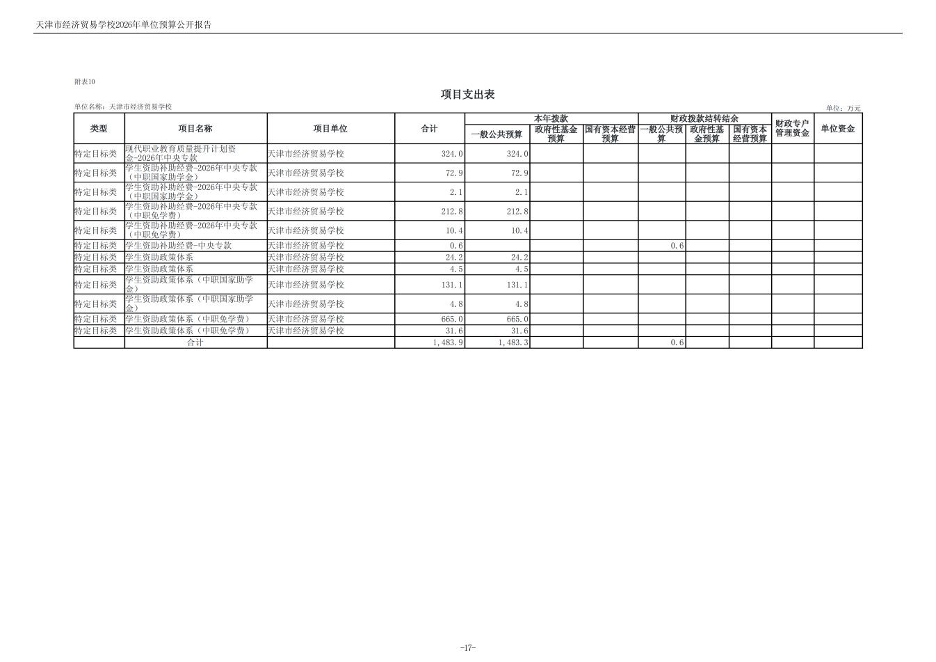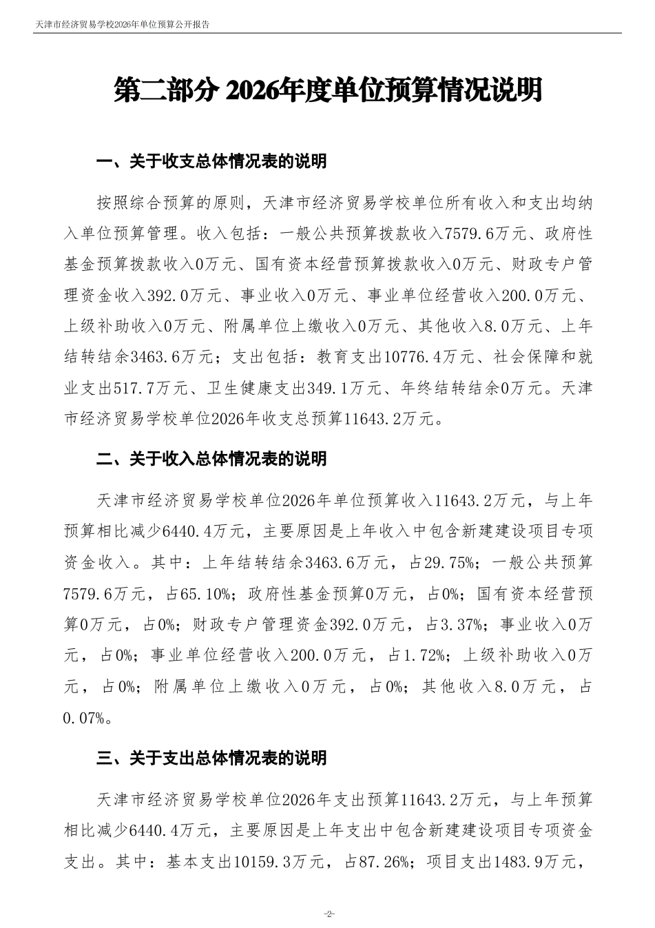 天津市經濟貿易學校2026年度單位預算
